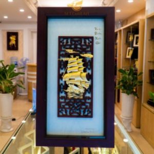 Tranh thuyền thuận buồm xuôi gió dát vàng (55x110cm)